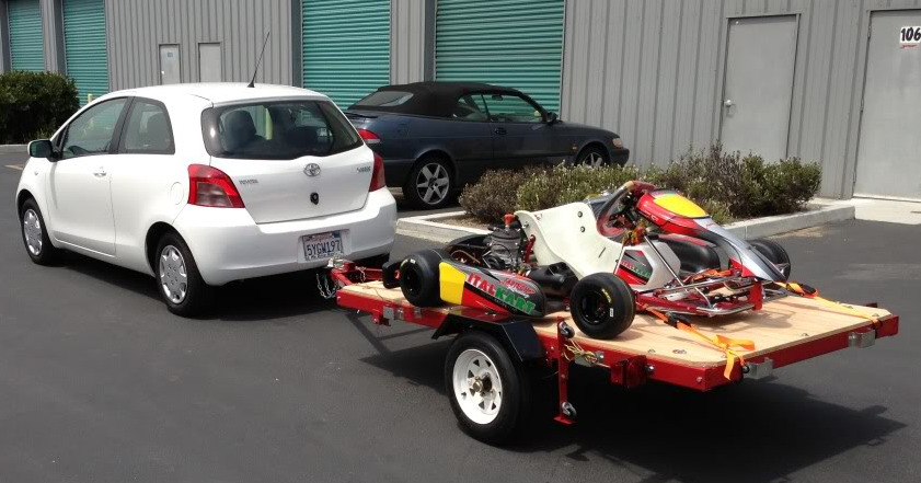 The preferred option is to buy a trailer. A kart will easily lay flat on a 5×8 utility trailer or 6×10 enclosed trailer. Due to the relatively low combined weight, a utility trailer can be towed by almost any vehicle including small sedans.