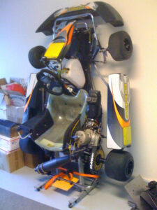 If you are tight on storage space, you should know that karts can be stored vertically (such as against a wall). However, you may need to drain or remove the fuel tank and engine before storage.